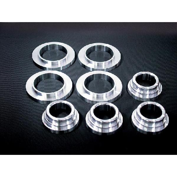 リアメンバーは上記画像の黄色 印分の 4か所でボディに固定されています。 直接ボディに固定されているのではなく ゴムブッシュを介してボディに 固定されています。 このブッシュがたわむことによって、 リアメンバーが上下左右方向に 動けるようになっております。 タイヤ、サスペンションが受けた地面からのメンバーカラーを取付をしましょう。 割り入りのものを使用すれば メンバーを下ろさなくても 取り付けすることができます。 工賃も格安で済みますよ! メンバーの上下にこのカラーを 挟み込んで取付けます。 そうすると上下方向の動きが抑制されて車高調やダウンサスなどでローダウンした際に変化してしまうスタビライザーの取付角度を補正 2本セット リヤメンバーカラー 965 927 a ¥27,500 (税抜¥25,000) アルミ製カラーによりゴムブッシュのタワミを低減 アライメント変化を抑制しコントロール性能、トラクション性能を向上させます